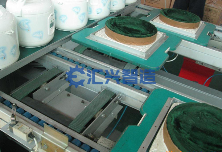 匯興智造電飯煲整廠自動化生產(chǎn)線是由各式差速鏈裝配檢測線、懸掛輸送裝配線、輥道輸送裝配線、鏈板式電機浸漆線、電飯煲測試檢測線組成,另外包括自動噴涂設備、頂升平移機、打包機等各類專機設備,共同完成電飯煲的生產(chǎn)任務。