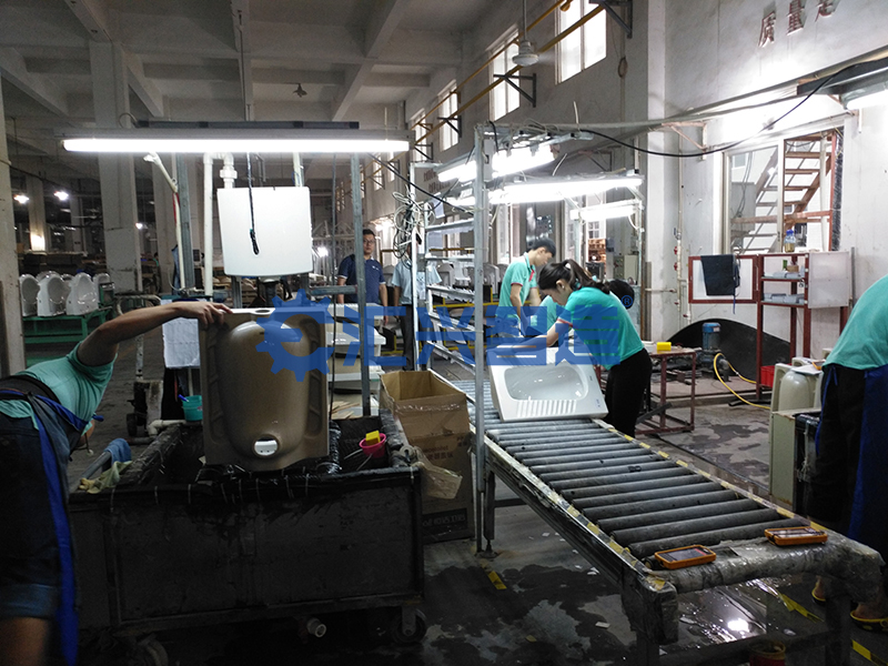 滾筒線因為承載重量大,常應用于衛浴產品的輸送。滾筒線應用于衛浴產品輸送,這大大降低了勞動強度,節約勞動成本,提高工作效率。滾筒線可以按照蹲便器等衛浴產品的尺寸,重量進行針對性設計。安裝衛浴滾筒線可以加托盤,這可減少蹲便器與滾筒的直接接觸,大大降低了損壞值,刮花的風險。