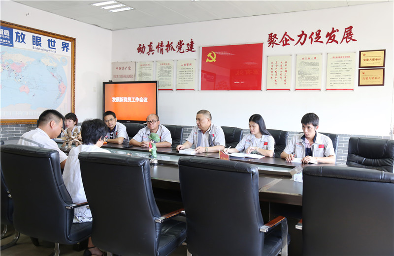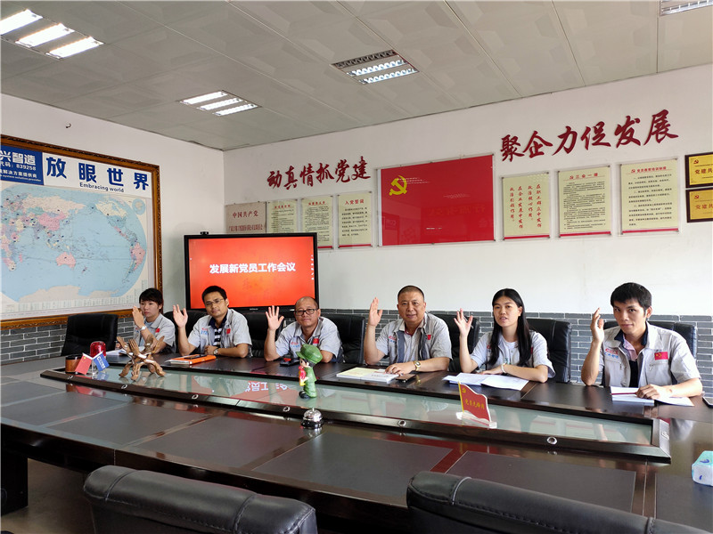 7月1日,為紀念中國共產黨建黨98周年,繼承和發揚黨的光榮傳統,進一步發揮黨建引領作用和黨員的先鋒模范作用,以黨員帶動群眾,中國共產黨廣東匯興精工智造股份有限公司支部委員會(簡稱:匯興智造黨支部)組織開展“七一”黨建主題活動。匯興智造黨支部在黨員活動室召開“發展新黨員工作會議”,討論發展袁侃和蔣明華兩位同志為入黨積極分子,黨支部成員悉數參加會議。