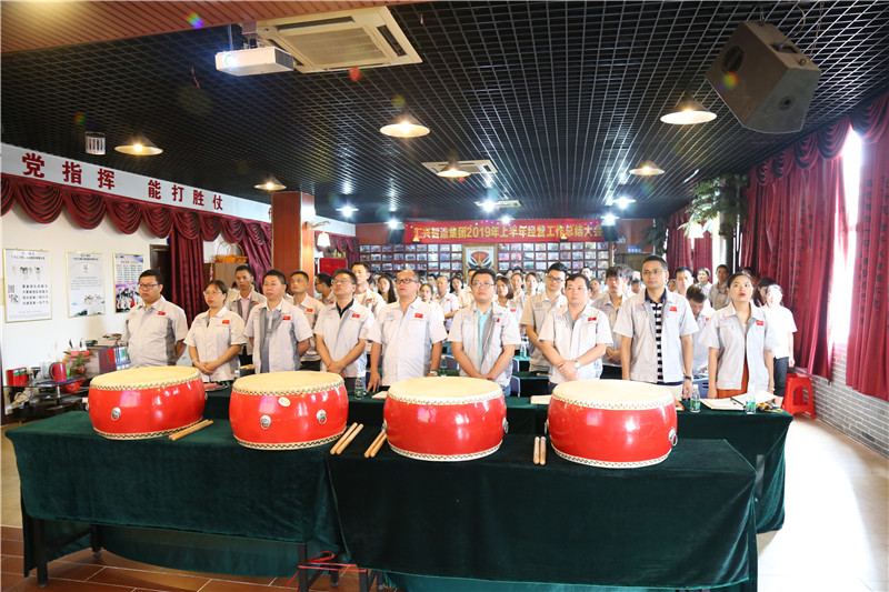 大會最后一項議程由董事長鐘輝作2019年上半年經營工作總結以及2019下半年工作部署。鐘董圍繞公司的軟實力打造和硬實力建設,要求全體干部和職工在下半年要以只爭朝夕的緊迫感和使命感,狠抓落實“258行動計劃”。【匯興智造258行動計劃:2:堅持企業硬實力和品牌軟實力兩個基本點,堅持設備智造和配件銷售兩條腿走路,堅持國內市場和國外市場兩只手發力;5:主動做好個人的心態管理、目標管理、時間管理、學習管理、行動管理等五項管理;8:主動發揚“5+2”、“白+黑”的艱苦奮斗精神,每一位員工都要堅守崗位,既要出工,也要出活,特別是領導干部要帶頭利用晚上1小時進行學習和總結,確保完成2019年集團智能制造板塊2.58億元的經營業績目標!】