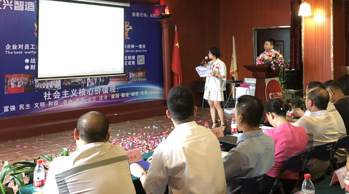 2017年9月28日,廣東匯興精工智造股份有限公司(股票代碼:839258)在匯興學(xué)校召開9月份月度大會(huì)及重要簽約儀式。董事長(zhǎng)鐘輝,辛主任,東莞證券郭副總裁一行,大信會(huì)計(jì)事務(wù)所肖所長(zhǎng)一行,華商律師所姜先生一行,中國(guó)銀行大嶺山支行葉行長(zhǎng),建設(shè)銀行大嶺山支行陳行長(zhǎng),東實(shí)集團(tuán)潘經(jīng)理等一系列特別嘉賓及匯興智造各分子公司代表參加此次大會(huì)。人資行政部經(jīng)理袁侃主持本次會(huì)議。
