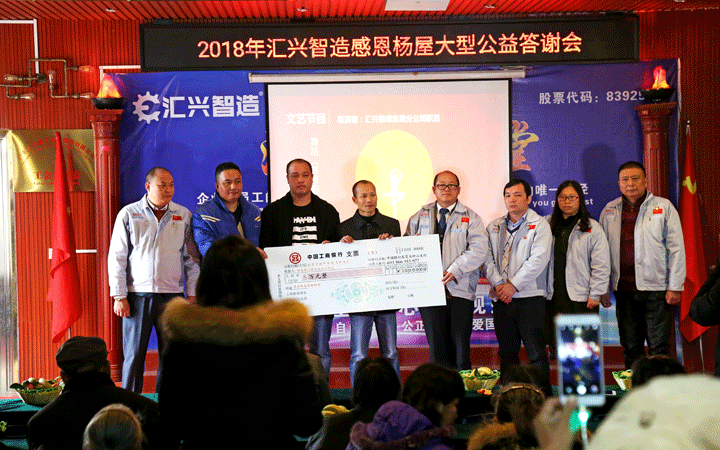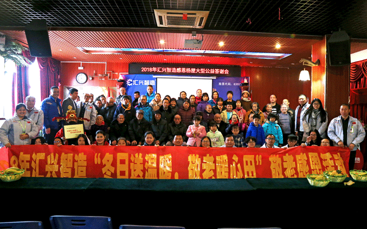 每年在過春節之前組織員工為老人獻愛心、盡孝道,是匯興智造公司十多年沉淀下來的文化傳統,真情不變,風雨不改。此次感恩楊屋敬老活動,企業籌資現金及物資達三萬余元,大嶺山鎮電視臺也來現場采訪,匯興智造董事長鐘輝在活動現場說:一個人最大的能力是敬業,一個人最大的智慧是感恩。國門越打越開,心門不能越關越緊,這個社會所有資源都會越分越少,唯有愛會越分越多。企業作為一個職能組織機構,也是社會的一分子,任何時候都不能忘了挖井人,關愛今天的老人,就是關愛明天的自己,孝敬老人,熱心公益,不在乎驚天動地的“大手筆”,更在意細水長流般的用心與堅持。