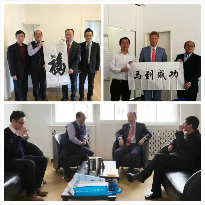 匯興智造鐘董將中國的文化傳到歐洲,將匠心的祝福送到德國,匯興智造機器人事業部工程師們專門編程的機器人書法作品:「福」「馬到成功」送給廣東省商務廳歐洲辦、博世集團。