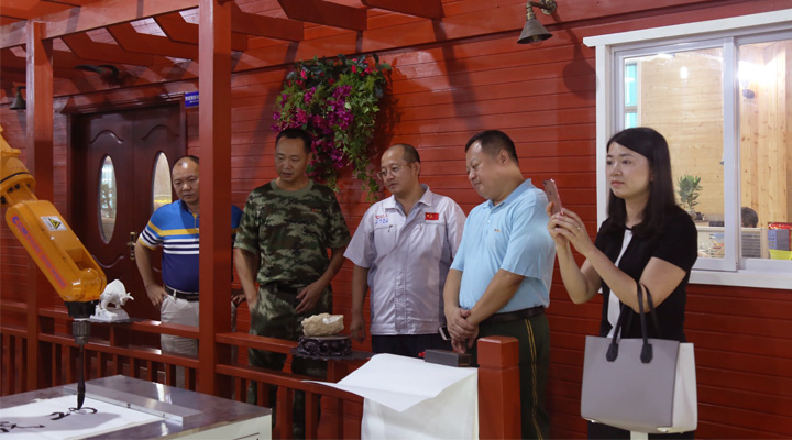 2017年9月19日,東莞理工學院原黨委副書記王江水,武警廣東總隊訓練基地政委施峰,辦公室主任鐘水強一行蒞臨廣東匯興精工智造股份有限公司(股票代碼:839258)參觀指導。匯興智造董事長鐘輝代表全體員工對貴賓的到來表示熱烈歡迎,并全程陪同參觀匯興智造工業4.0智能裝備體驗館。