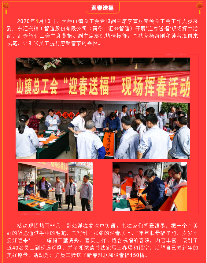 翰墨飄香送春聯(lián),文化進(jìn)企暖人心——鎮(zhèn)總工會來匯興開展“迎春送福”現(xiàn)場揮春活動